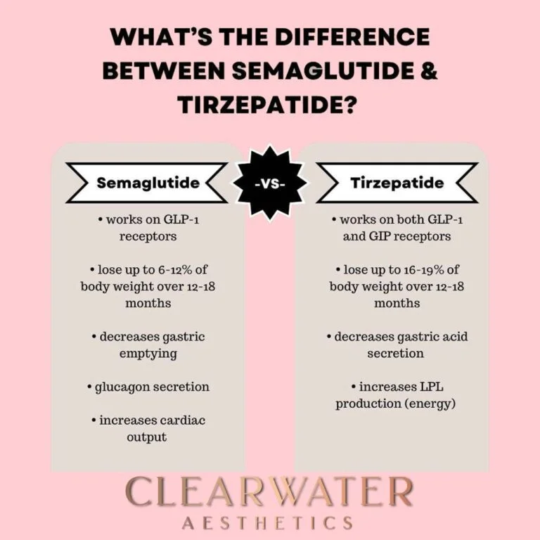 Tirzepatide, on the other hand, is a dual glucose-dependent insulinotropic polypeptide (GIP) and GLP-1 receptor agonist. In addition to activating GLP-1 receptors like Semaglutide, it also activates GIP receptors, which stimulates insulin secretion from the pancreas in response to food intake. By targeting both GIP and GLP-1 receptors, Tirzepatide has been shown to be more effective in lowering blood sugar levels and promoting weight loss than GLP-1 receptor agonists alone.